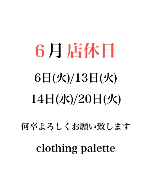 《6月店休日のお知らせです》